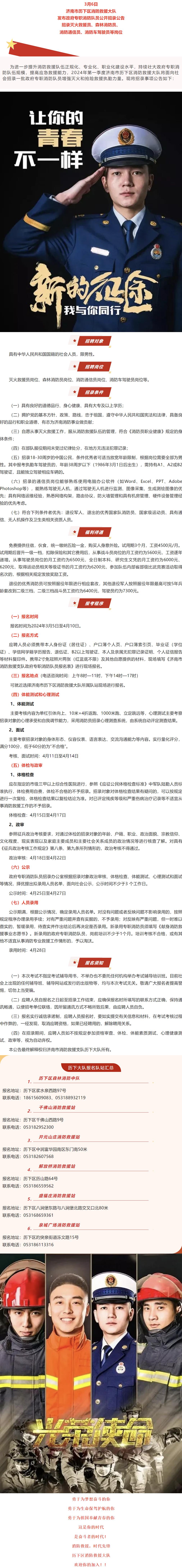 济南市历下区消防救援大队招录公告来了!