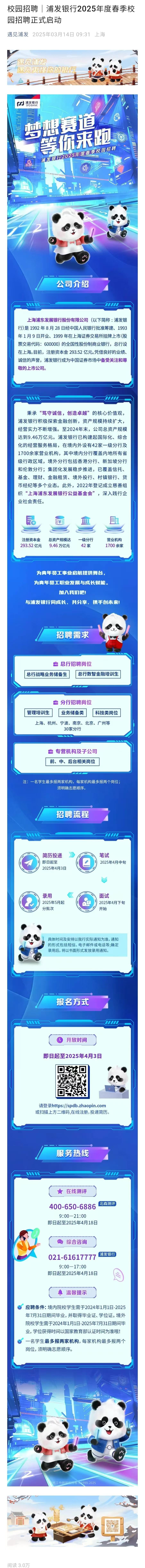 校园招聘|浦发银行2025年度春季校园招聘正式启动