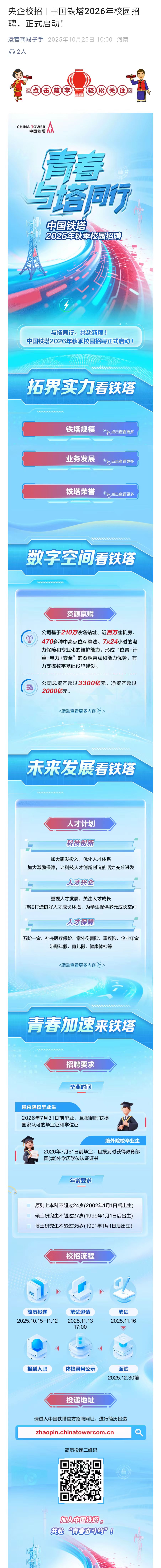 央企校招 | 中国铁塔2026年校园招聘,正式启动!