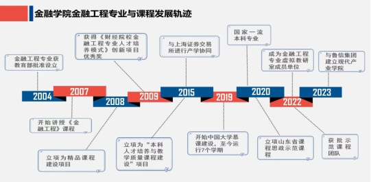 2004年获教育部批准设立,2009年荣获《财经院校金融工程专业人才培养模式》创新项目优秀奖,2015年与上海证券交易所进行产学协同,2020年入选国家一流本科专业,2022年成为金融工程专业虚拟教研室成员单位,2023年与鲁信集团建立现代产业学院。